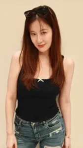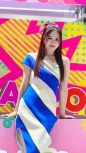 บรรยากาศรอบตัวที่เต็มไปด้วยสีสันสดใส ยิ่งขับให้ความสวยของเธอเด่นชัดขึ้น ท่ามกลางฉากหลังที่ดูราวกับเวทีแห่งความฝัน เธอกลับโดดเด่นด้วยความเรียบง่าย และ ความนุ่มนวล ราวกับดอกไม้สีขาวที่บานอยู่ท่ามกลางสวนดอกไม้หลากสี ความสงบในตัวเธอทำให้ภาพทั้งหมดดูสมดุล และ น่ามองอย่างยิ่ง