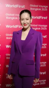 แต่ตัวเธอกลับเป็นจุดศูนย์กลางที่สงบนิ่ง และ งดงาม เครื่องประดับที่เธอเลือกใช้ เช่น ต่างหู และ สร้อยคอ ถูกเลือกอย่างพอดี ไม่เด่นเกินไปจนแย่งความสนใจจากใบหน้า แต่ช่วยเสริมให้ลุคโดยรวมดูสมบูรณ์ และ มีระดับ รายละเอียดเล็ก ๆ เหล่านี้สะท้อนถึงความใส่ใจ และ รสนิยมที่อ่อนโยนของเธอ เป็นความงามที่ไม่ได้พึ่งพาความหรูหราเกินจำเป็น แต่ใช้ความพอดีเป็นหัวใจ
