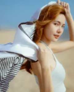 งานถ่ายแบบ ในชุดเสื้อเชิ้ตสีขาว ธรรมดา ๆ แต่พออยู่บนตัวเธอแล้วกลับดูมีอะไรขึ้นมาทันที ยิ่งถ้าเป็นโลเคชัน ริมทะเล มีวิวฟ้า น้ำ ลม เป็นฉากหลัง ถึงแม้บางช็อตจะถ่ายจากด้านหลัง ก็ยังสวยละมุนแบบบอกไม่ถูก ฟีลเหมือนภาพในปกนวนิยายรักสักเล่มหนึ่ง ดูเงียบ ๆ